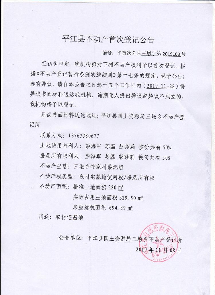 彭海军 苏磊 彭莎莉 按份共有50% 108