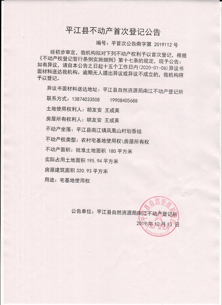 不动产登记公告