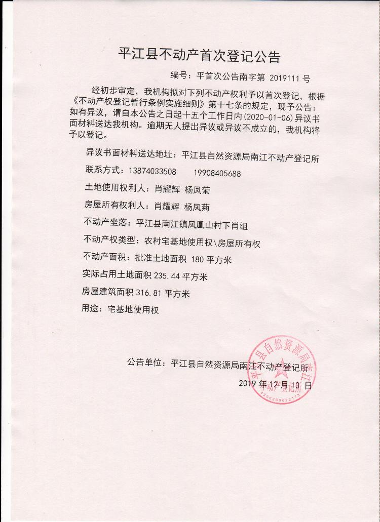 不动产登记公告
