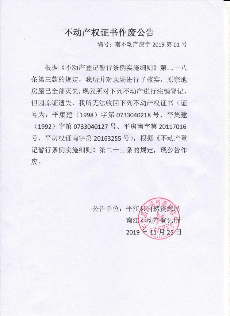 不动产登记公告