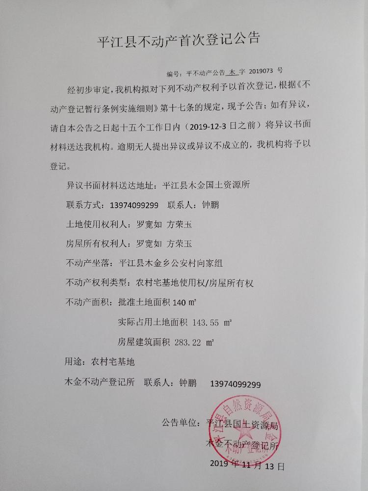 罗宽如 方荣玉不动产首次登记公告