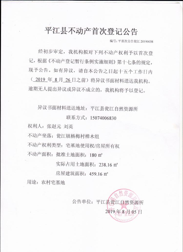 张赵元 刘英不动产首次登记公告