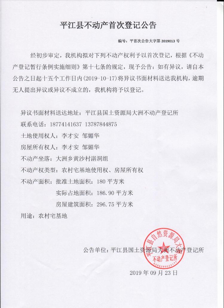 李才安 邹媚华平江县不动产首次登记公告.jpeg