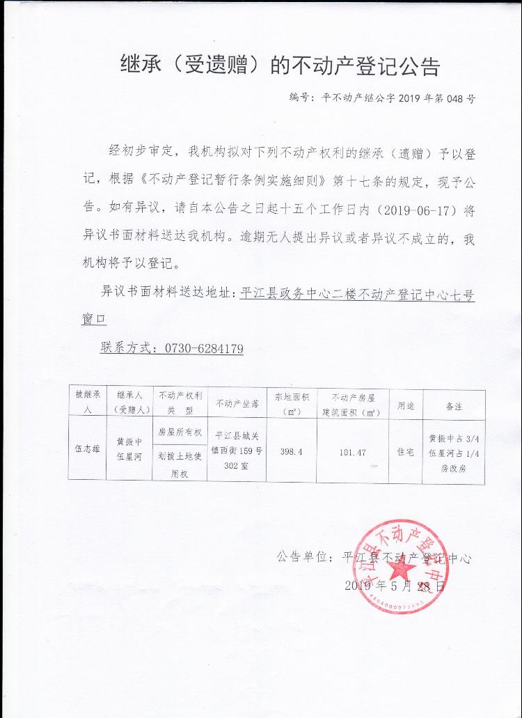 吴孟东 张建英平江县不动产首次登记公告平不动产首次公告字2019加字第2019015