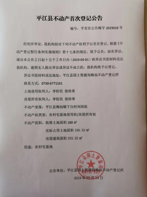李松民 徐桂荣不动产首次登记 梅字2019018号
