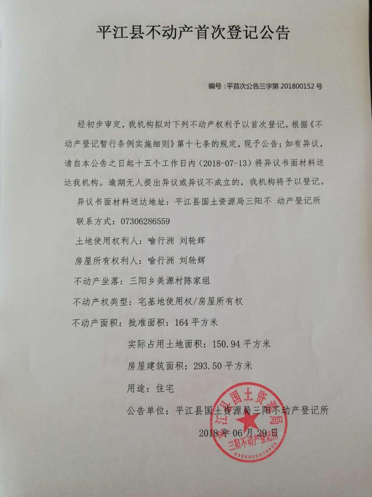 三阳乡 喻行洲 刘轮辉 不动产首次登记