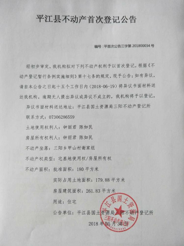 不动产登记公告