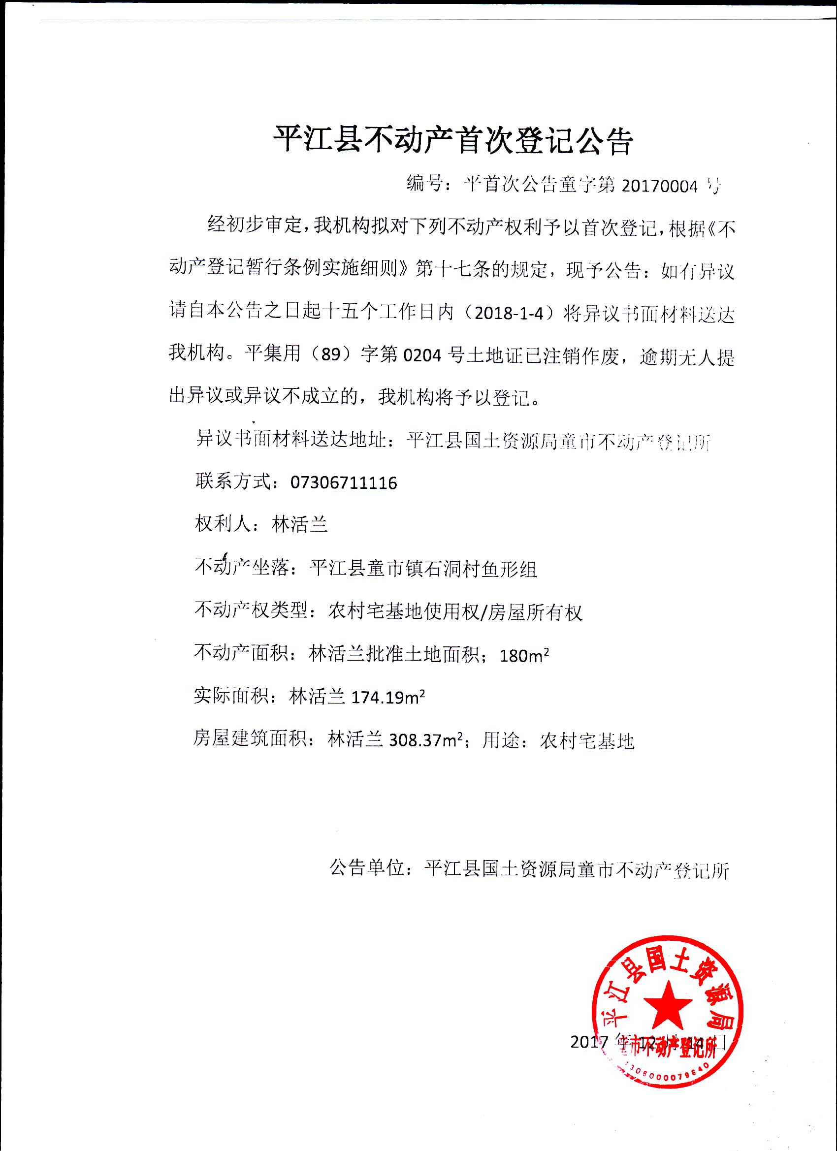林活兰不动产首次登记公告1