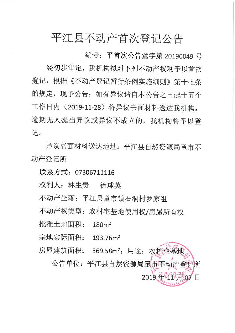 林生贵 徐球英不动产首次登记公告