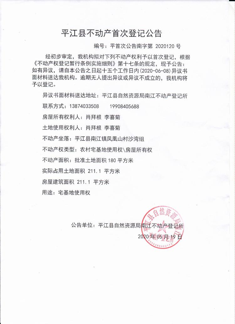 肖拜根 李喜菊不动产首次登记公告