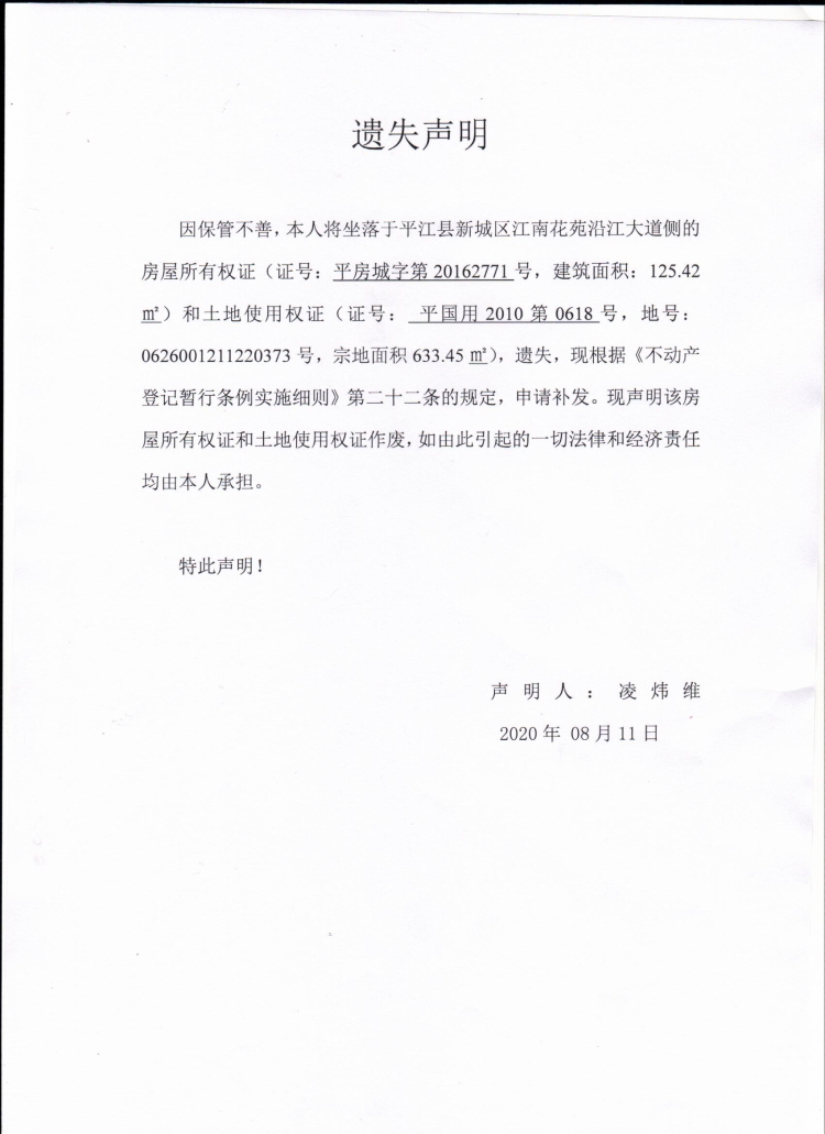 凌炜维房屋所有权证和国土证遗失声明.jpg