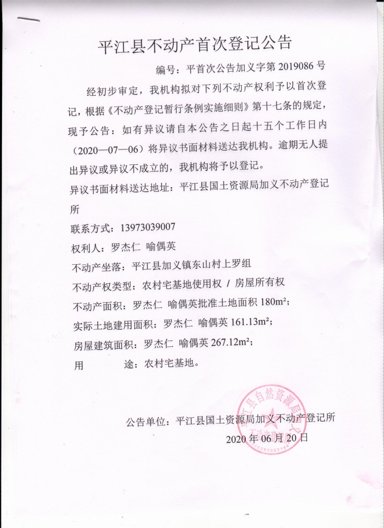 不动产登记公告