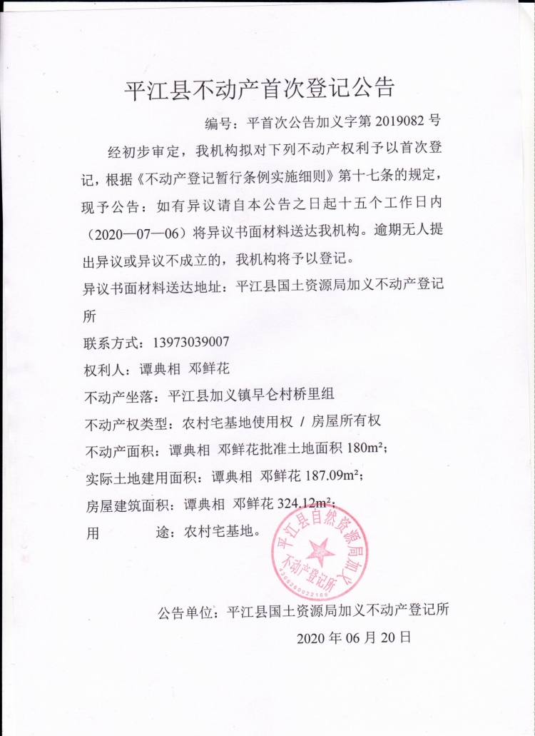 不动产登记公告