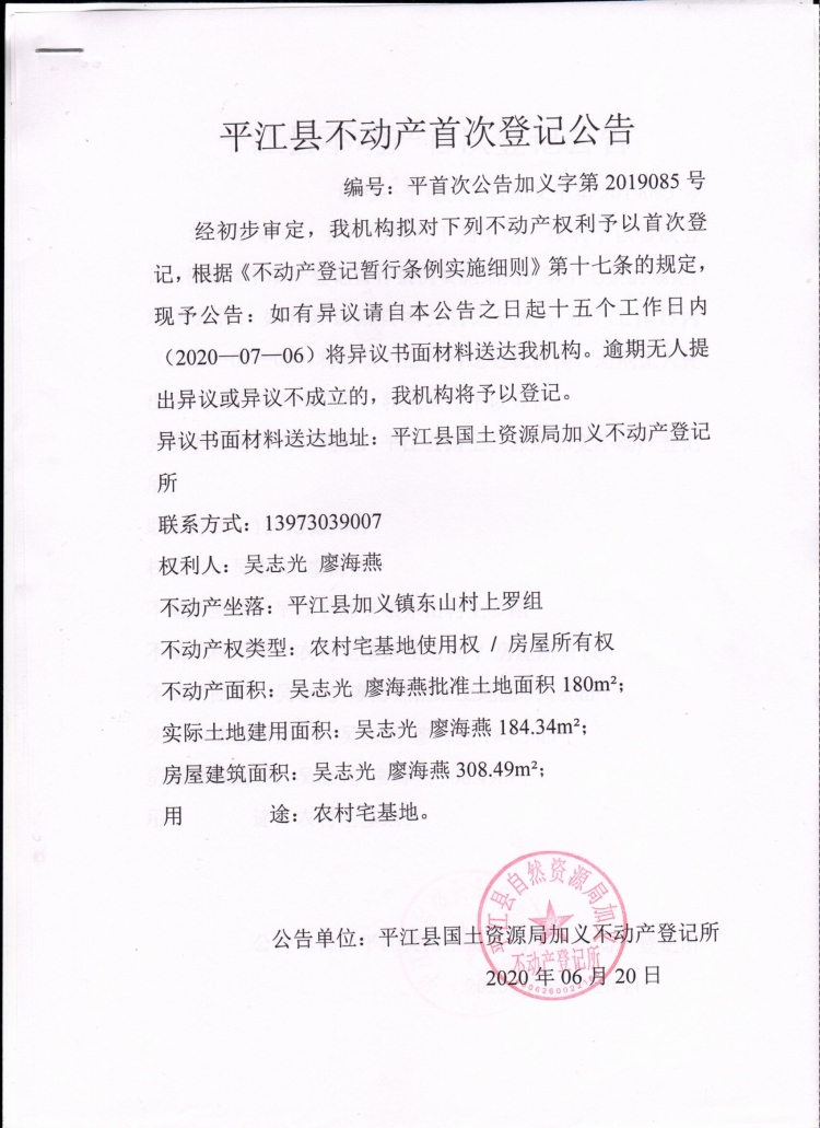 不动产登记公告
