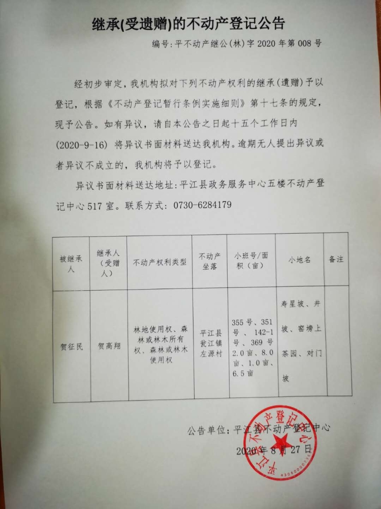贺高翔林权继承(受遗赠)公告