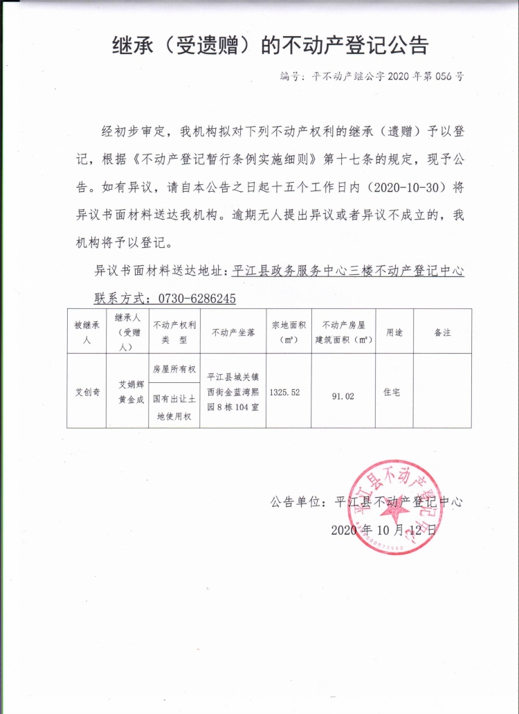 艾娟辉、黄金成继承(受遗赠)的不动产登记公告.jpg