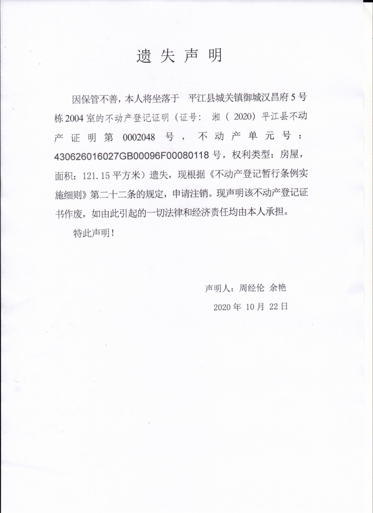 周经伦 余艳不动产预告证遗失声明.jpg
