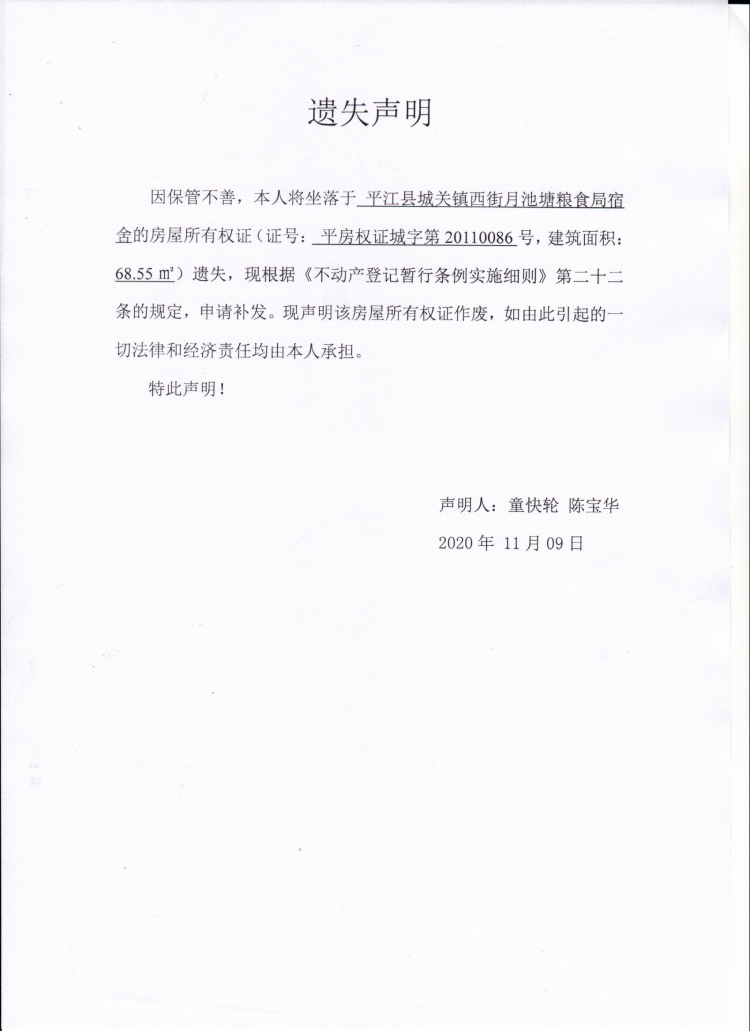童快轮 陈宝华房屋所有权证遗失声明.jpg