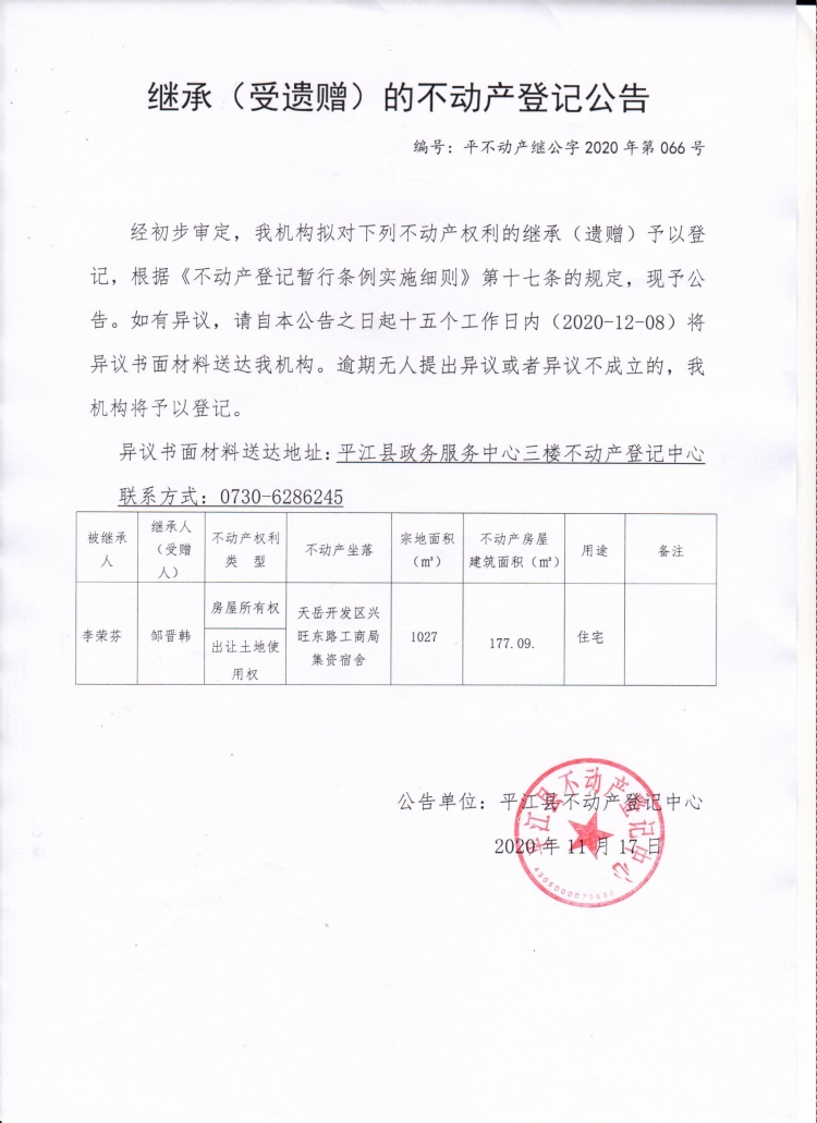 邹晋韩继承(受遗赠)的不动产登记公告.jpg