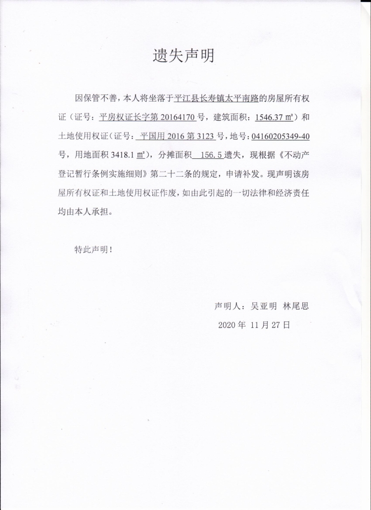 吴亚明 林尾思房屋所有权证和国土证遗失声明.jpg