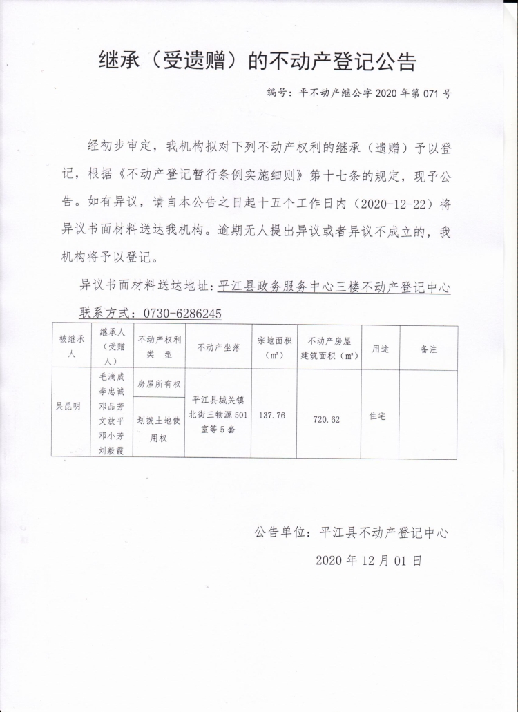 毛滴成 李忠诚等六人继承(受遗赠)的不动产登记公告.jpg