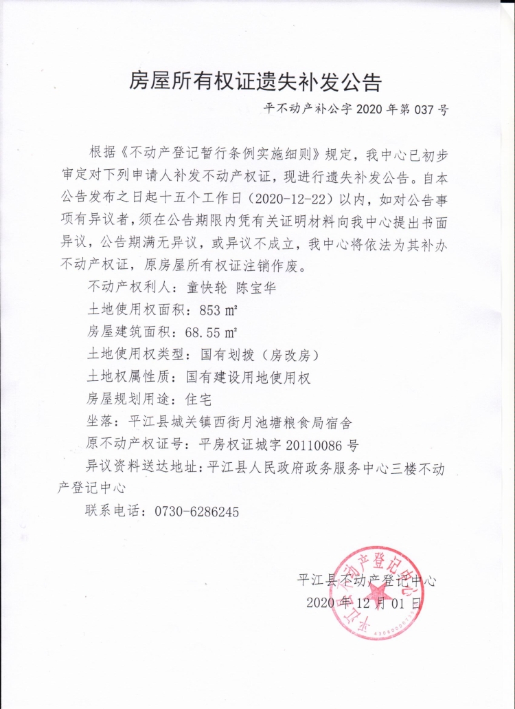 童快轮 陈宝华房产证遗失补发公告.jpg