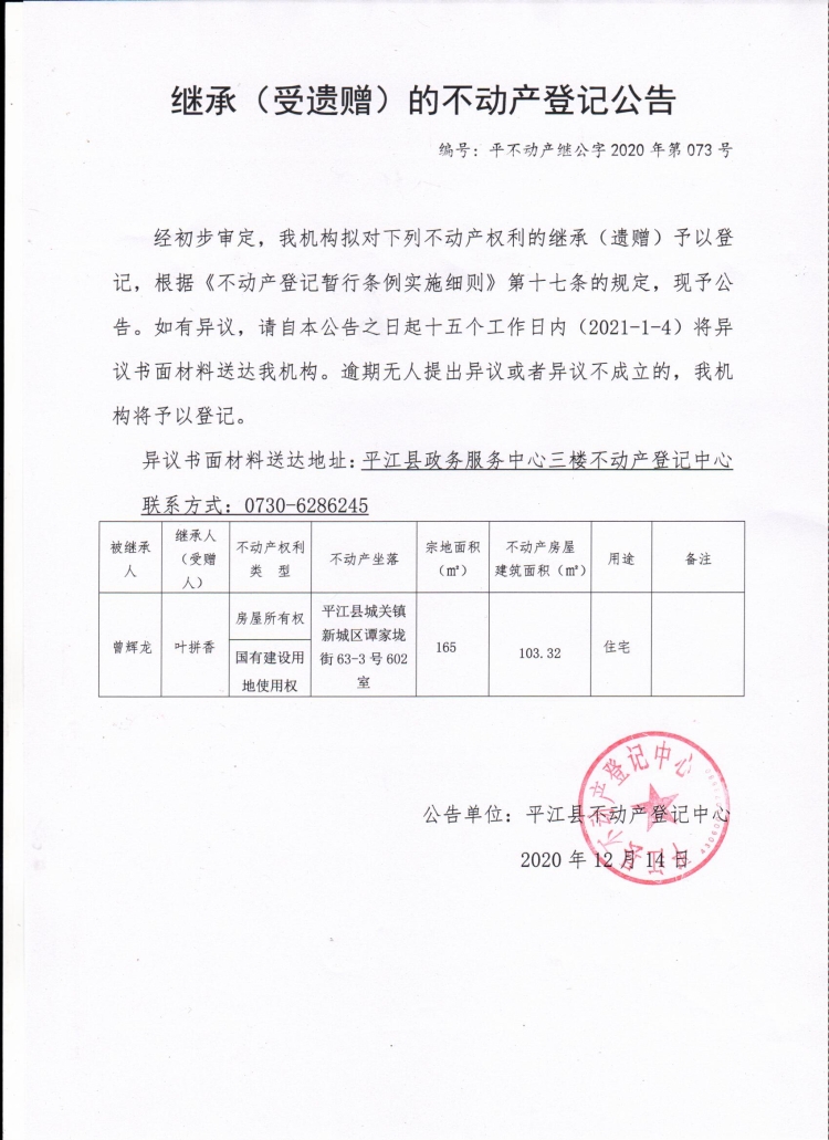叶拼香继承(受遗赠)的不动产登记公告.jpg