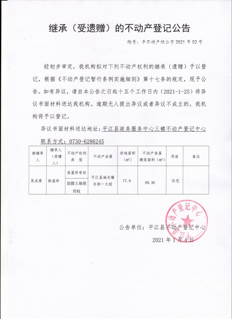 徐益珍继承(受遗赠)的不动产登记公告.jpg