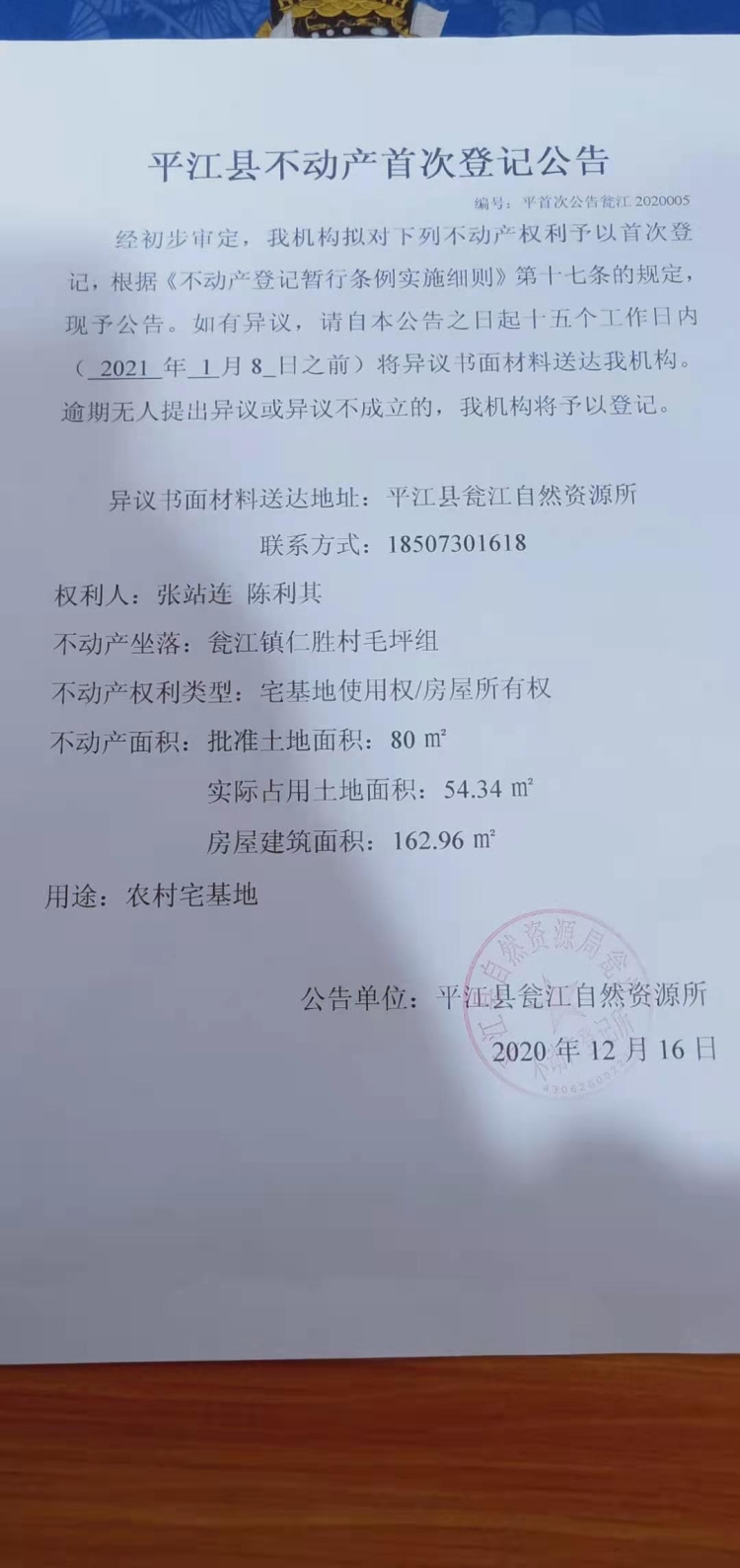 来源:平江县自然资源局不动产登记中心