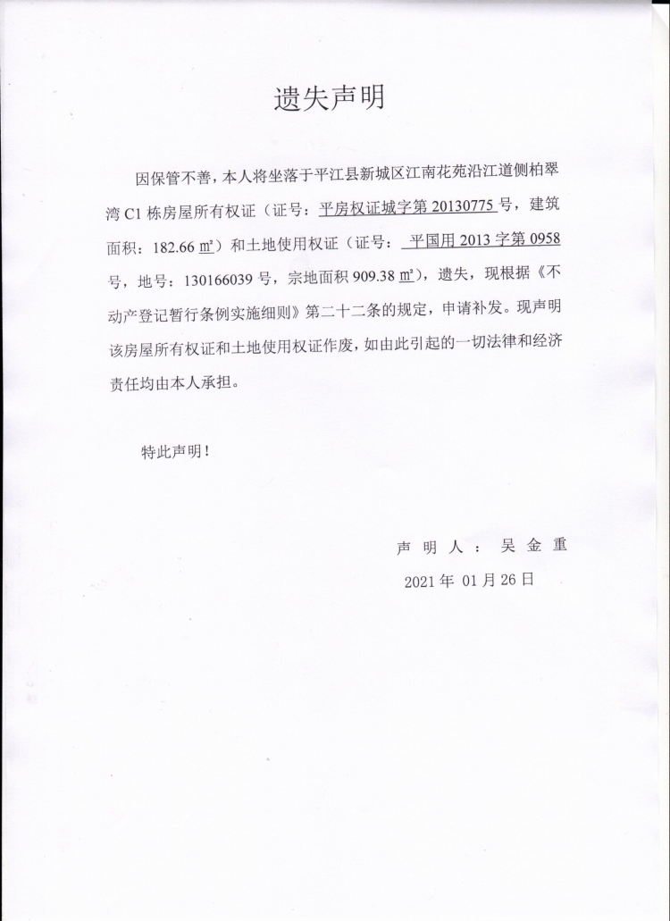 吴金重房屋所有权证和国土证遗失声明.jpg
