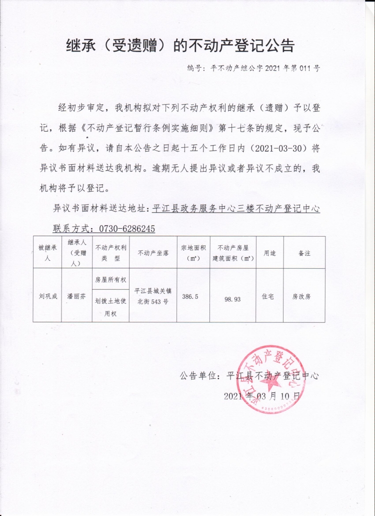 潘丽芬继承(受遗赠)的不动产登记公告.jpg