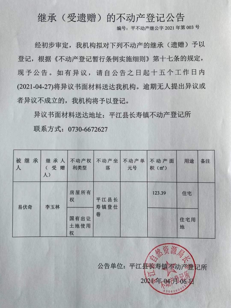 来源:王震英 熊姣姣继承(受遗赠)的不动产登记公告