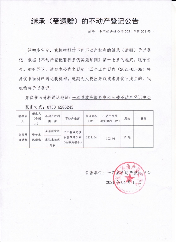 张传永 陈赠梅继承(受遗赠)的不动产登记公告.jpg