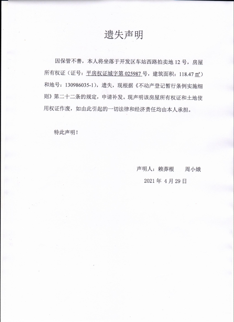 赖莽根、周小娥房屋所有权证和国土证遗失声明.jpg