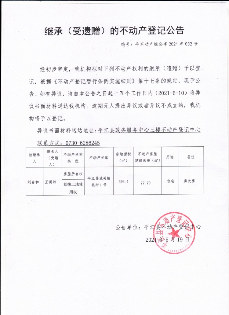王冀湘继承(受遗赠)的不动产登记公告.jpg