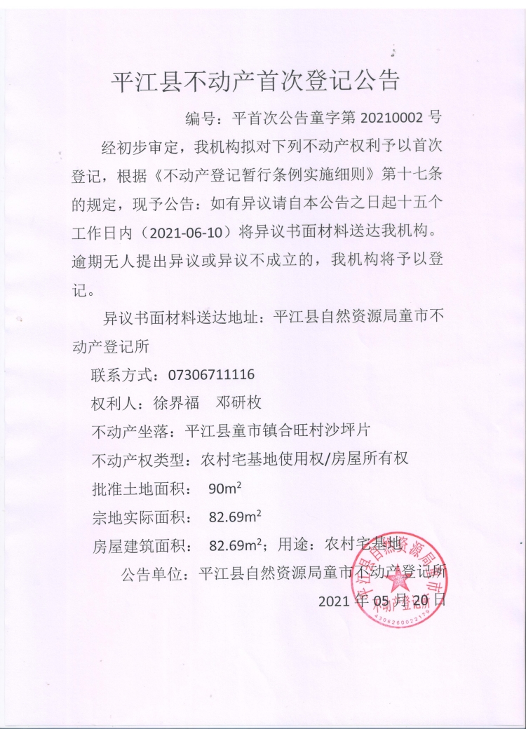 徐界福 邓研枚 不动产首次登记公告