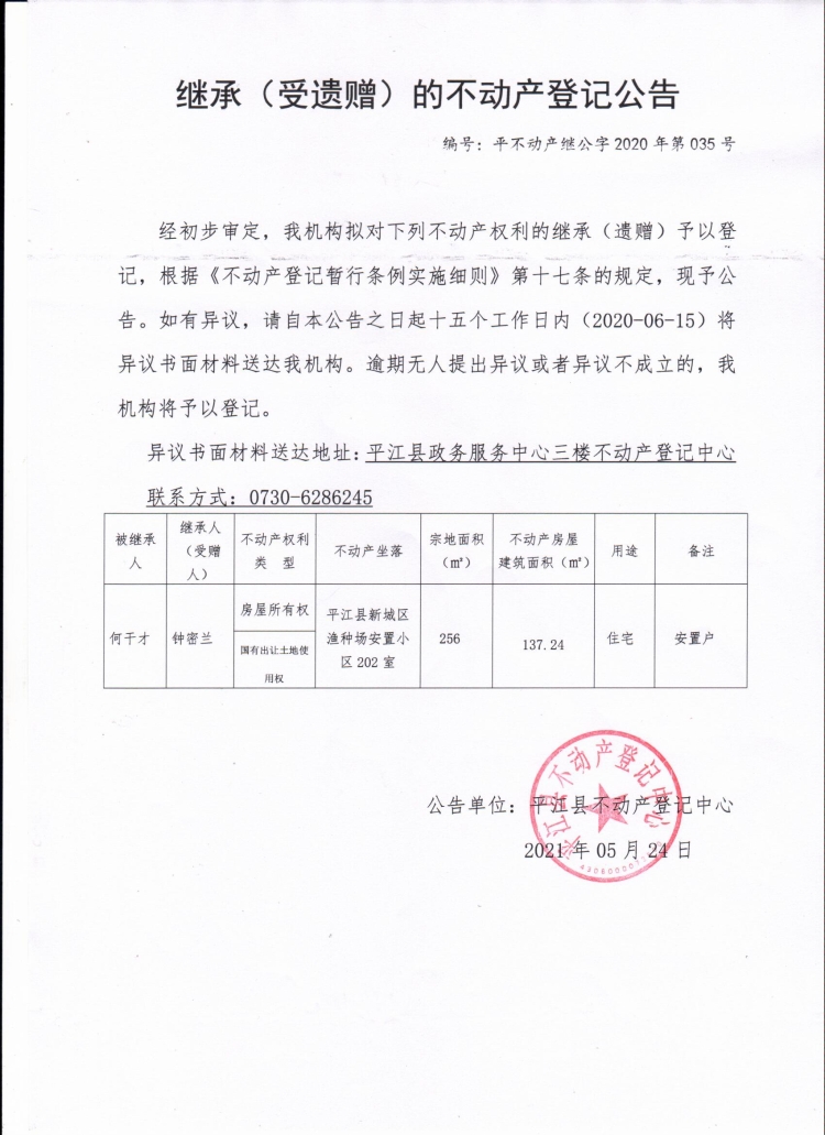 钟密兰继承(受遗赠)的不动产登记公告.jpg