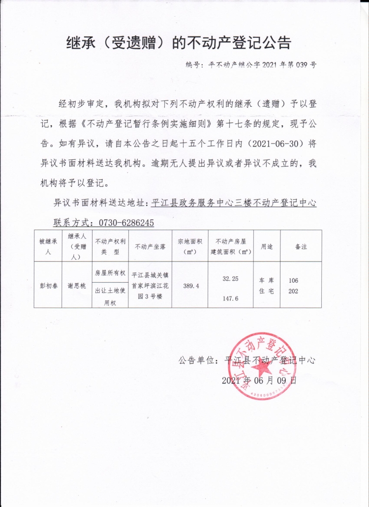 谢思桃继承(受遗赠)的不动产登记公告.jpg