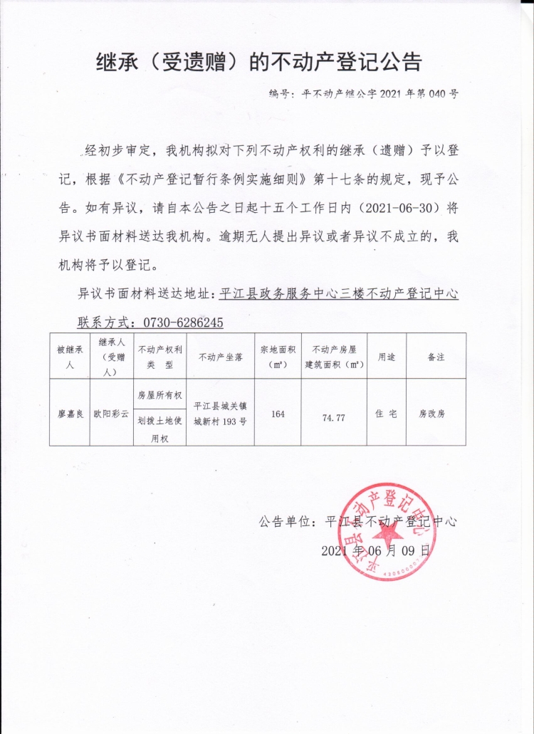 来源:平江县自然资源局不动产登记中心