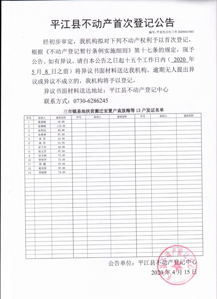 三市镇易地扶贫搬迁安置户袁放梅等13户首次登记公告.jpg
