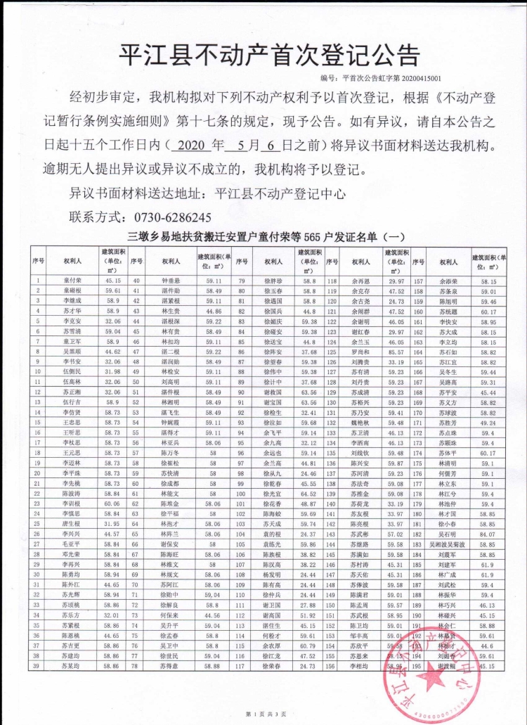 来源:平江县自然资源局不动产登记中心