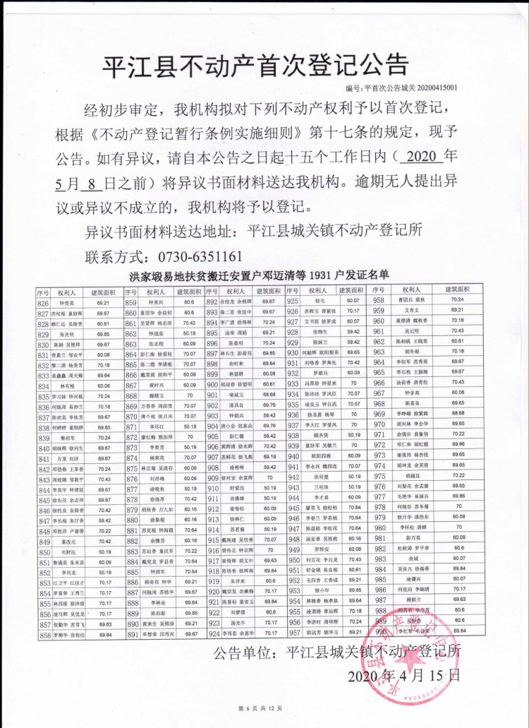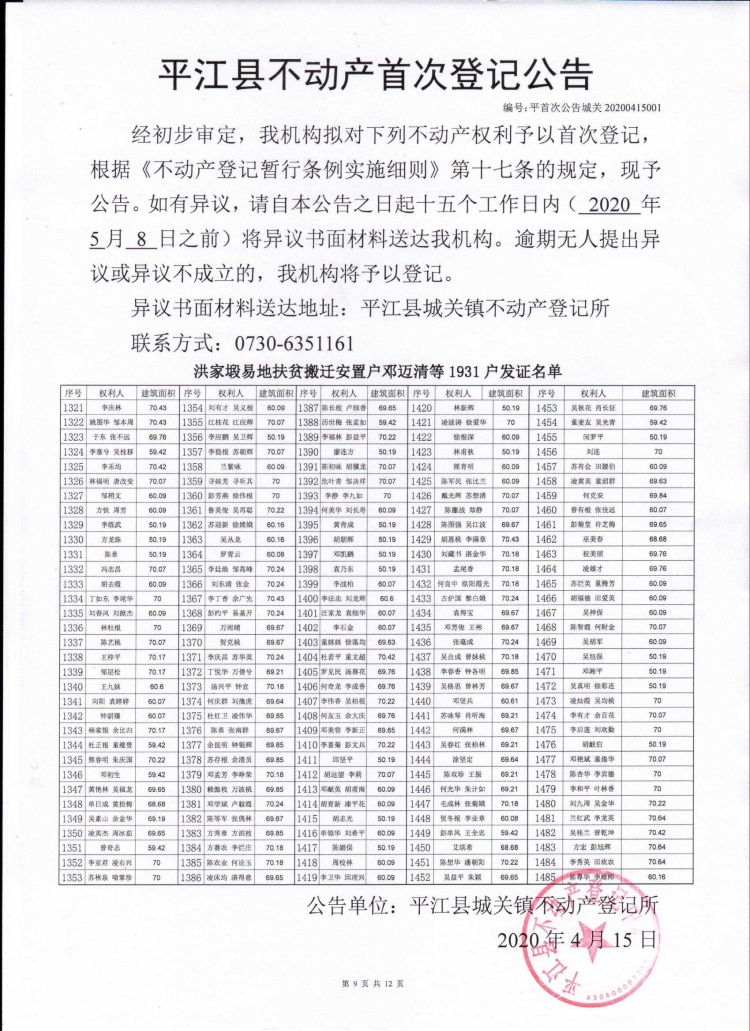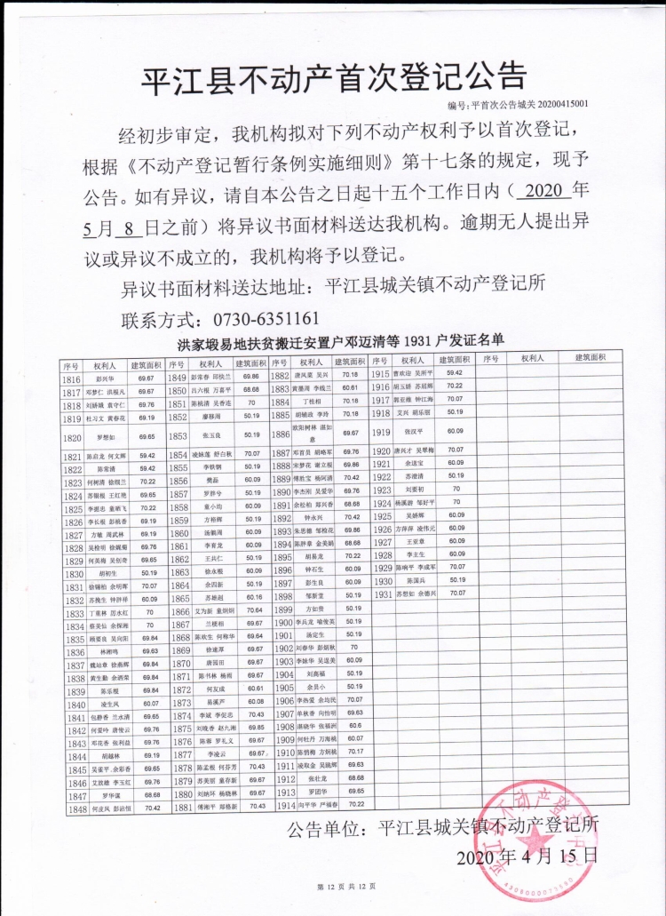 洪家塅易地扶贫搬迁安置户邓迈清等1931户首次登记公告.jpg