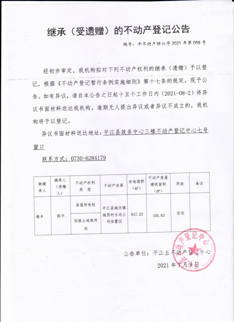 陈平继承(受遗赠)的不动产登记公告.jpg