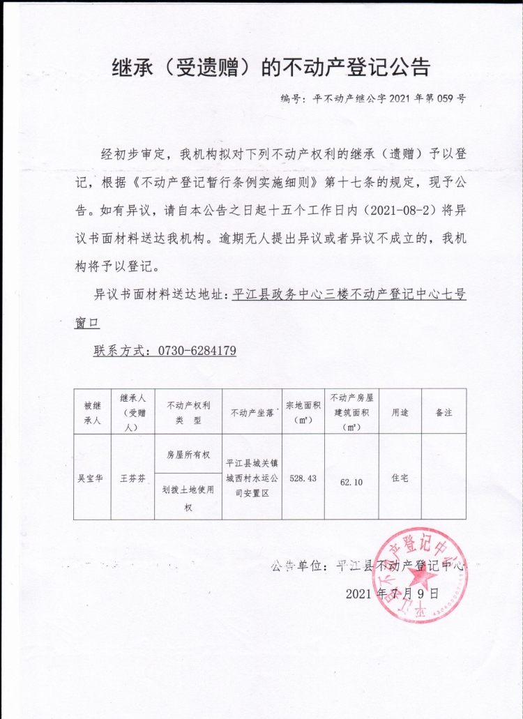 王芬芬继承(受遗赠)的不动产登记公告.jpg