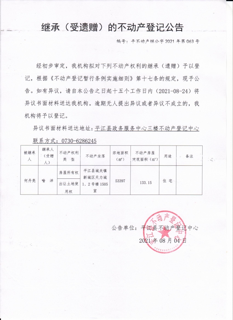 喻洋继承(受遗赠)的不动产登记公告.jpg