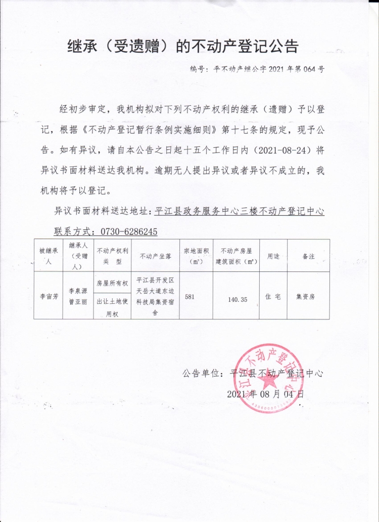 李泉源 曾亚丽继承(受遗赠)的不动产登记公告.jpg
