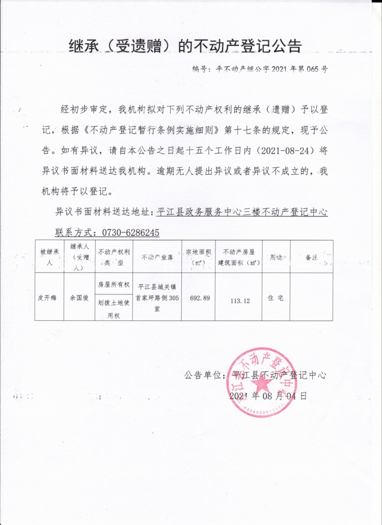 余国俊继承(受遗赠)的不动产登记公告.jpg