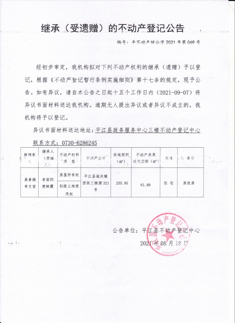李奤阳 楚映霞继承(受遗赠)的不动产登记公告.jpg