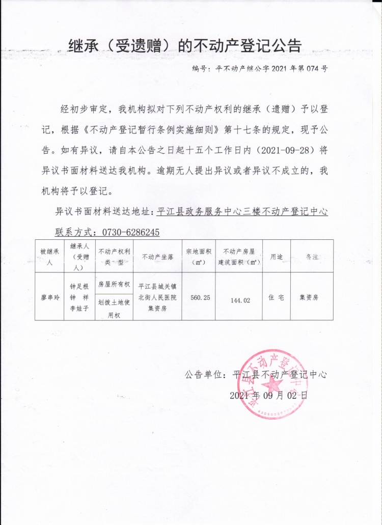 来源:平江县自然资源局不动产登记中心