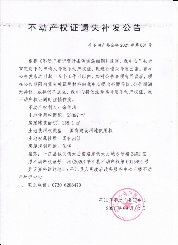 余佳琦不动产预告证遗失补发公告.jpg